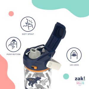 Every adventure needs the perfect hydration companion. and the 16-ounce Beacon bottle from zak! is designed to keep up with your child’s busy day. Featuring a spill-proof silicone spout and a convenient push-button lid. this water bottle eliminates leaks and ensures an easy. mess-free experience. The wide carrying handle is ideal for little hands to grab and go and parents will love the protective bumper for added durability. making it perfect for active kids. Plus. the top-rack dishwasher-safe design makes clean-up a breeze. With a variety of bold. colorful designs. the Beacon Bottle is as stylish as it is functional. making hydration fun and hassle-free for kids and parents alike.