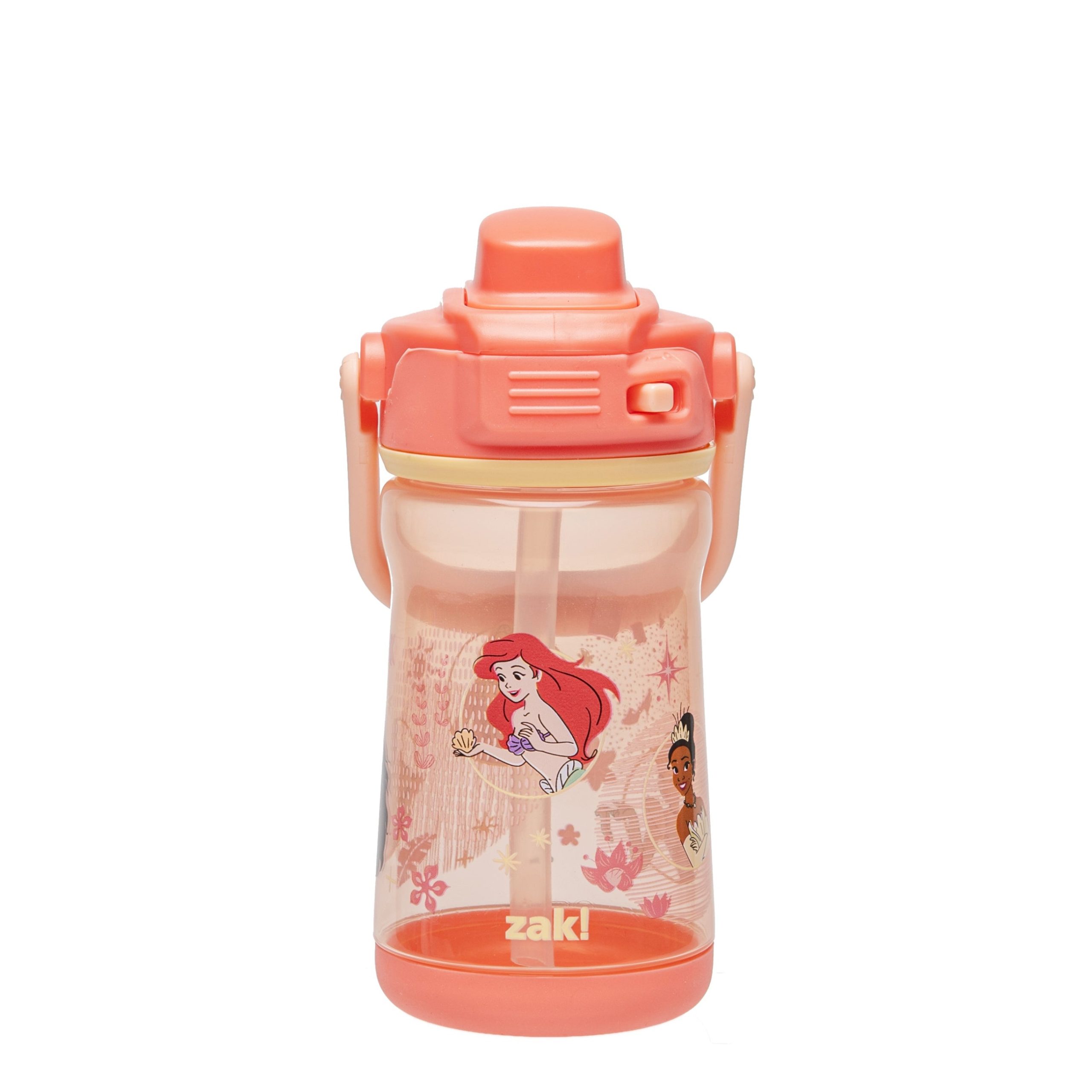 Whether it’s a school day. a playdate. or an exciting weekend adventure. the 12oz Disney Princess Beacon Water Bottle from zak! is the perfect companion for keeping little ones hydrated. Made from sturdy. BPA-free plastic. it’s built to withstand the bumps and scrapes of an active lifestyle while ensuring safety and durability. The soft silicone spout is gentle and comfortable. and a flip-up protective cover opens with the push of a button. making it easy for kids to sip on the go. The spout locks securely to prevent leaks. and the non-skid base helps keep the bottle steady and absorbs impact to protect it from damage. Sized to fit in most car cup holders and equipped with a convenient carrying handle. this bottle is designed for grab-and-go convenience. When the adventure ends. simply toss it on the top rack of the dishwasher for a hassle-free cleanup. Featuring a fun design that adds a splash of joy to every sip. this reusable bottle is sure to make staying hydrated a highlight of your child’s day!