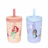 The 16-ounce Disney Princess tumbler is made of durable stainless steel. with vacuum insulation that keeps drinks fresh and cool while stopping condensation and water rings. It has a silicone straw that’s comfortable to sip from. as well as sealed to the lid to help prevent splashes and spills. When you’re on the go. the handle gives you a secure grip and the tumbler fits in most car cup holders. making travel easy and convenient. And at the end of the day. the durable stainless steel straw tumbler is top rack dishwasher safe for easy cleanup! Use it with kids age 3 and up for cold drinks only. and do not microwave.