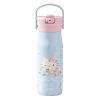 The 18-ounce Hello Kitty tumbler is made of durable stainless steel. with vacuum insulation that keeps drinks fresh and cool while stopping condensation and water rings. It has a silicone straw that’s comfortable to sip from. as well as sealed to the lid to help prevent splashes and spills. When you’re on the go. the handle gives you a secure grip and the tumbler fits in most car cup holders. making travel easy and convenient. And at the end of the day. the durable stainless steel straw tumbler is top rack dishwasher safe for easy cleanup! Use it with cold drinks only and do not microwave.