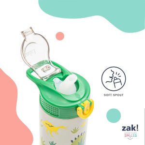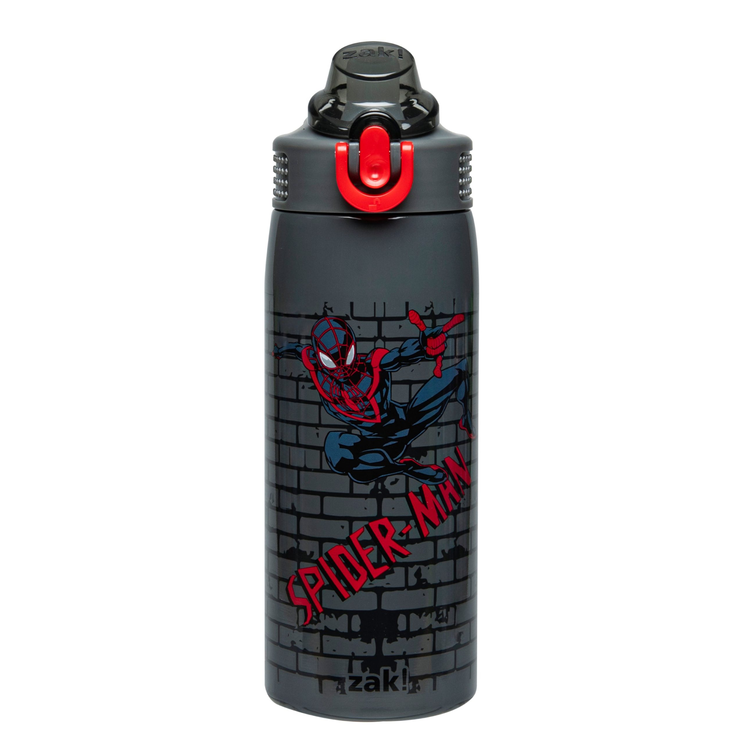 The Marvel Spider-Man 19-ounce water bottle is made of durable stainless steel. sturdy enough for kids to use every day and bring on any adventure. Vacuum insulation and double-wall construction will keep drinks cold for hours. while stopping condensation from leaving messy water rings. The lid screws on securely and won’t leak when the spout is closed. though water flows for easy drinking when the spout is open. It also has a quick-release button that makes water easy to access. and a flip-up lock to keep it from activating accidentally. The drinking bottle has a built-in carrying loop for easy transportation. and with the cover to keep the spout clean and closed. it can be tossed into a bag for worry-free travel. At the end of the day. the lid is easy to disassemble for a thorough cleaning. and the water bottle is top rack dishwasher safe to simplify your routine. Use with cold drinks only and do not microwave.